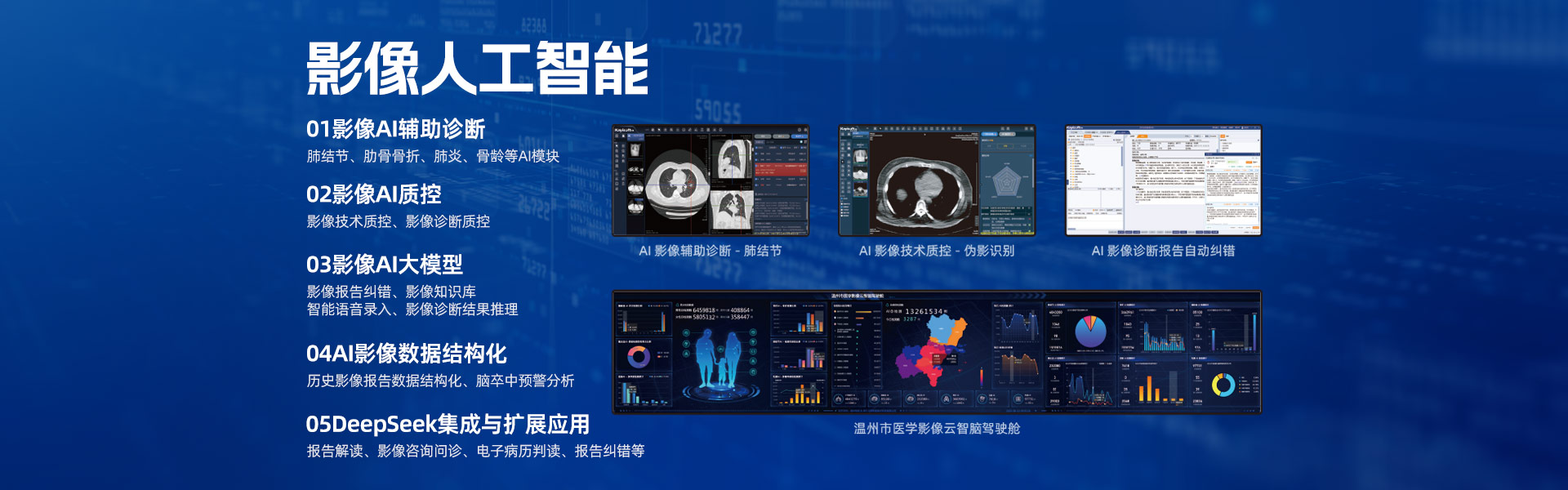 影像信息化深耕15年以上,影像產(chǎn)品群全面,擁有全院PACS/RIS、影像檢查醫(yī)技臨床預(yù)約、云影像(云膠片)、區(qū)域影像暨檢查互認(rèn)、影像中臺(tái)、影像人工智能、MDT多學(xué)科聯(lián)合會(huì)診、遠(yuǎn)程醫(yī)療協(xié)同平臺(tái)解決方案,是國(guó)內(nèi)極少能全面提供上述全套產(chǎn)品群的廠家之一。